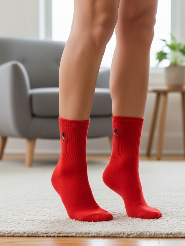 ₺69,99 +kdvKırmızı Kiraz Nakışlı Spor Patik Çorap