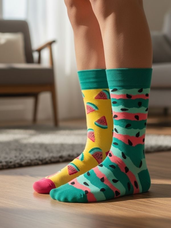 Sağlı Sollu Çekirdekli Karpuz Desenli Soket Çorap