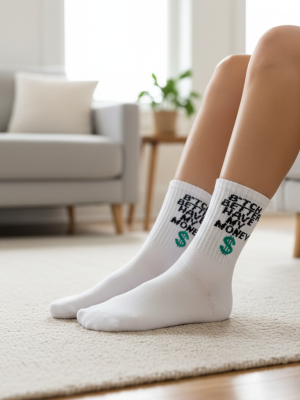 Spor giyime meydan okuyan bir bakış açısı getiren “Bitch Better Have My Money” Yazılı Tenis Spor Çorabı ile hem kortlarda hem de sokakta tüm dikkatleri üzerinize çekin. Yazılı spor çorabı trendini en cesur haliyle sunan bu model, kişiliğini giyimiyle ortaya koymaktan çekinmeyenler için tasarlandı. Sadece bir moda parçası olmanın ötesinde, sporda ve hayatta hedeflerinize ulaşma konusundaki kararlılığınızı simgeleyen bu çorap, iddialı spor aksesuarları arasında hızla favoriniz olacak.