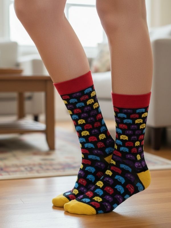 Pacman Desenli Renkli Soket Çorap
