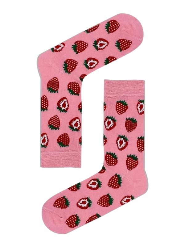 Pembe Çilek Yaz Renkli Tasarım Soket Çorap