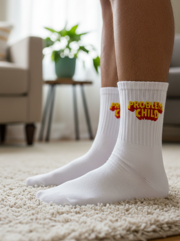 Gardırobuna enerjik ve sınırları zorlayan bir dokunuş katmak isteyenler için Problem Child Yazılı Tenis Spor Çorapları tasarlandı. “Problem Child” mesajıyla dikkat çeken bu yazılı spor çorap, genç ve dinamik stili tamamlayan eşsiz bir aksesuardır. Yüksek bilekli tasarımı sayesinde spor ayakkabılarla ya da asi giyim tarzıyla kolayca kombinlenebilir, sıradan tenis çorabı olmanın ötesine geçerek bir moda ifadesine dönüşür.