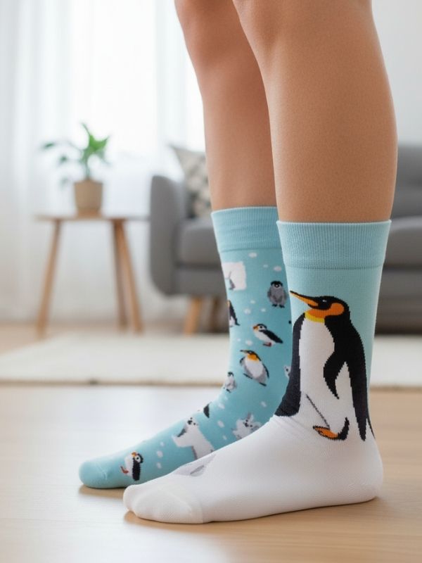 Sağlı Sollu Penguen Desenli Soket Çorap