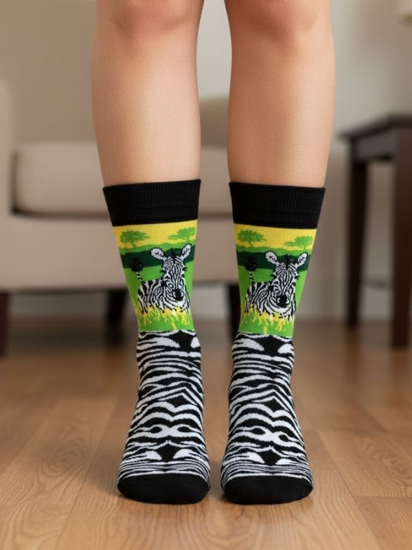 Modası asla geçmeyen ve her zaman dinamik bir duruş sergileyen zebra deseni, Savana Zebra Tasarım Soket Çorap koleksiyonuyla ayaklarınızda hayat buluyor. Savana’nın vahşi ve çarpıcı kontrastını yansıtan siyah-beyaz çizgiler, kombininize anında güçlü ve sofistike bir hava katar. Bu çorap, sadece klasik bir desenin temsilcisi değil, aynı zamanda cesur bir stil beyanıdır. Zebra desenli çorap, hayvan temalı soket veya desenli konforlu çorap arayışında olan, minimalist çizgileri ve etkileyici kontrastı seven herkesin gardırobunda mutlaka yer almalıdır.