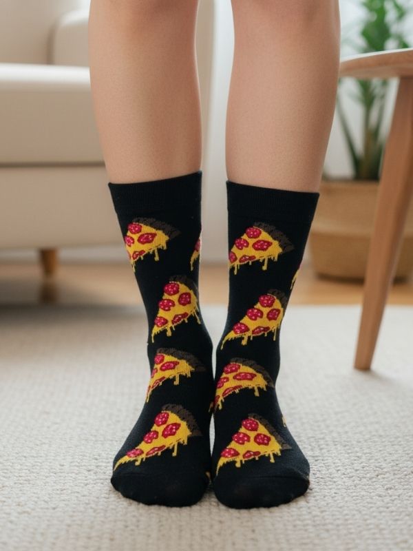 Siyah Pizza Dilim Tasarım Soket Çorap